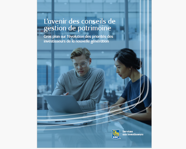 - Le futur client: La jeune génération d’investisseurs fortunés ne se contente pas de recevoir un patrimoine en héritage. Elle hérite aussi du pouvoir de façonner l’économie à l’image de ses valeurs. Ses priorités ont nettement changé. Elle favorise les critères ESG, la technologie et même les nouvelles catégories d’actifs telles que les cryptomonnaies. Nous estimons que RBC Services aux investisseurs est le partenaire de choix des conseillers en investissements qui entreprennent ce parcours transformationnel.